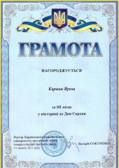 За результатами вікторини І місце посів курсант факультету № 1 Максим Кущ, ІІ місце – курсант факультету № 1 Іван Котляров і ІІІ місце поділили курсантка факультету № 3 Карина Ярош та курсант факультету № 4 Олександр Бабич.