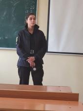 Наприкінці заняття лейтенант поліції Анастасія Дудченко відповіла на численні запитання курсантів та наголосила на важливості якісної теоретичної підготовки майбутніх поліцейських, знання ними норм діючого законодавства України задля успішної подальшої діяльності в практичних підрозділах поліції.