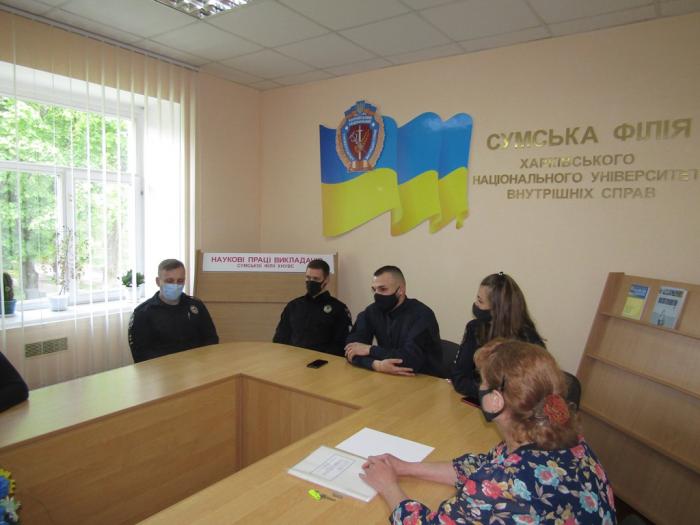 Доцентом кафедри гуманітарних дисциплін Сумської філії ХНУВС Тетяною Геращенко для студентів 1 курсу було проведено бінарне заняття за участі начальника відділення тактичної підготовки батальйону УПП в Сумській області старшого лейтенанта поліції Антона Юрченка, інспектора відділення тактичної підтримки батальйону УПП в Сумській області лейтенанта поліції Олександра Антонюка, інспектора відділення тактичної підготовки батальйону УПП старшого сержанта поліції Богдана Гейка, інспектора взводу № 2 роти 4 батальйону УПП в Сумській області лейтенанта поліції Юлії Ярмоленко. Тема семінарського заняття – «Основи аргументації. Доведення та спростування».