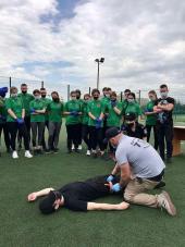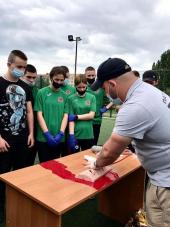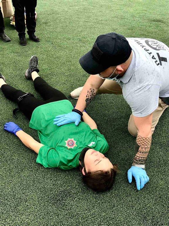 Для курсантів 1 курсу факультету № 3 Харківського національного університету внутрішніх справ проведено тренінг з надання домедичної допомоги. Курсанти дізналися про те, які бувають види кровотеч, опанували алгоритм зупинки критичної кровотечі шляхом прямого та опосередкованого тиску на рану, вчилися накладати джгут-турнікет та джгут Есмарха, робити тампонування рани, здійснювати відкриття дихальних шляхів, перевіряти ефективність дихання та надавати серцево-легеневу реанімацію. Тренінг провів інспектор роти ТОР ППП у м. Кривий Ріг УПП в Дніпропетровській області ДПП лейтенант поліції Артем Кривда.