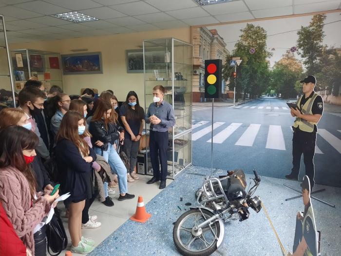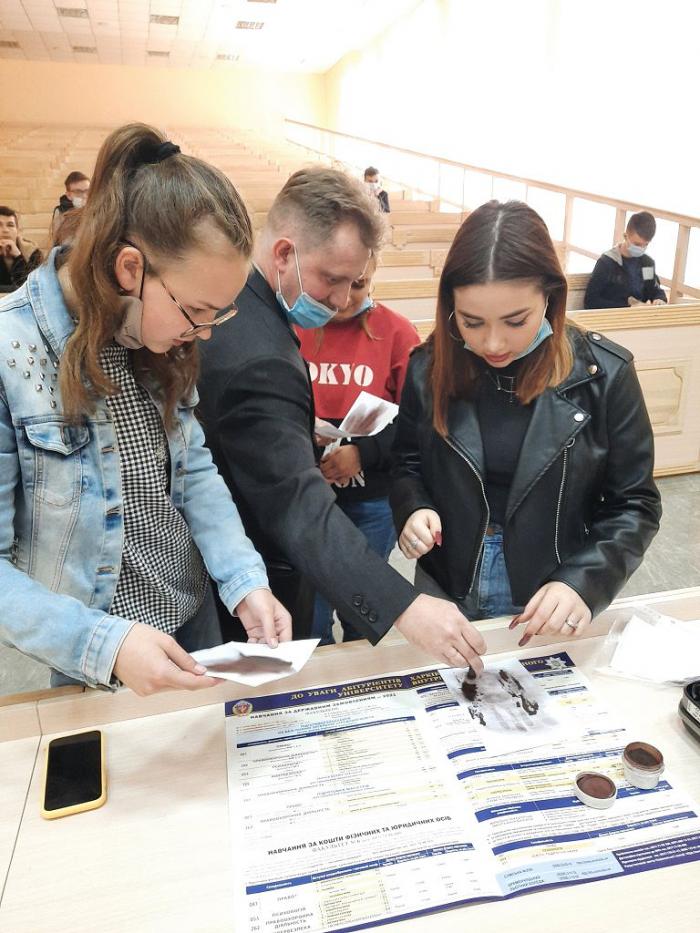 Школярі поспілкувалися з представником приймальної комісії, який ознайомив з вимогами вступу до ХНУВС, після чого на учнів чекала цікава екскурсія. Старшокласники відвідали музей, де вони ознайомилися з історією створення й становлення університету та правоохоронних органів Харківщини. Майбутні абітурієнти поспілкувалися з керівництвом факультету № 6 – деканом Оксаною Брусаковою та заступниками декана Сергієм Загороднім і Костянтином Свердліним, які розповіли про переваги навчання у виші та ознайомили зі спеціальностями, які можна отримати, навчаючись на факультеті № 6, з основними напрямами роботи та матеріально-технічною базою закладу. Наприкінці зустрічі школярам запропонували за допомогою засобів криміналістичної техніки зробити власні відбитки пальців, що викликало у них неабиякий інтерес.