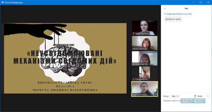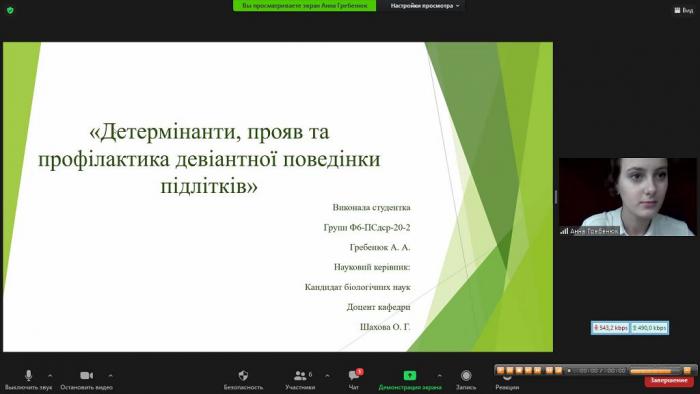 Кафедрою соціології та психології факультету № 6 Харківського національного університету внутрішніх справ проведено онлайн-засідання наукового гуртка з використанням платформи ZOOM. Тема засідання – «Підсумки наукових досліджень студентів у 2020–2021 навчальному році». У засіданні наукового гуртка взяли участь студенти та викладачі кафедри соціології та психології. Відкриваючи засідання, Олена Шахова – керівник наукового гуртка доцент кафедри, наголосила, що метою роботи наукового гуртка є не лише формування у студентів первинних систематизованих навичок науково-дослідної роботи, але й розвиток soft skills у форматі онлайн.